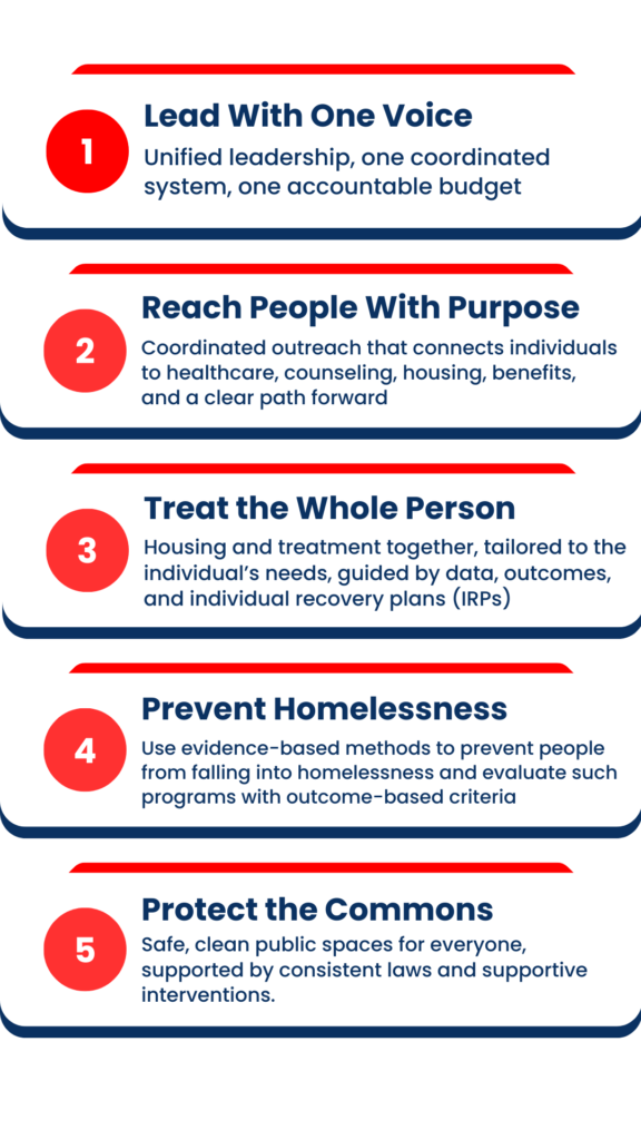 A clear, coordinated, and compassionate framework for helping people move from the street into stability, recovery, and